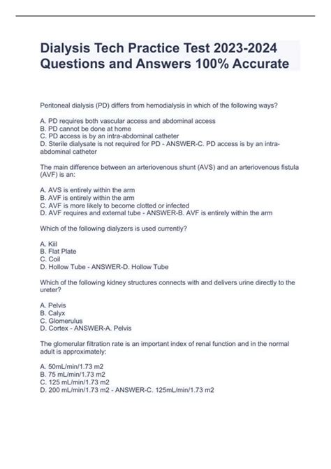 SPT - Download online Dialysis technician practice exam Doc Library Genesis